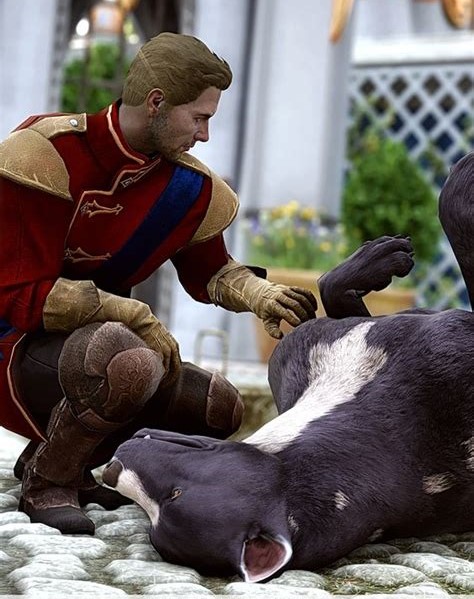 Von einem orlaisiansichen Händler erwirbt Cullen einen Mabari, wobei Cullen zum Zeitpunkt der Erhabenen Rats noch dabei ist, ihn nach seinem Wunsch auszubilden. Zu diesem Training gehört beispielweise, dass Cullen ein Ball wirft, der nach den Regeln des Trainings ein magischer Feuerball sei. Statt das zu tun, was Cullen will, nämlich ausweichen, nimmt der Mabari den Ball und bringt ihn zu Cullen.