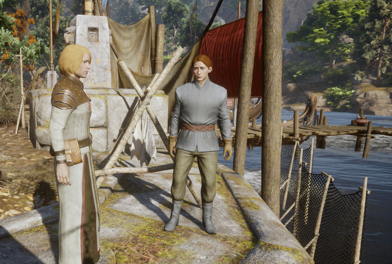 Unten am Hafen könnt Ihr außerdem Connor ausmachen, sollte er die Geschehnisse in Dragon Age: Origins unbeschadet überstanden haben. Sprecht ihn an und Ihr könnt noch ein wenig Zuneigung Eurer Gefährten einheimsen, vorausgesetzt, sie befinden sich in Eurer aktiven Gruppe.
