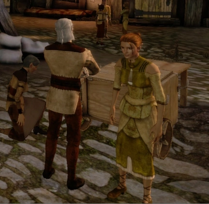 Nun wollen sie zu den Ruinen von Ostagar reisen, um dort Arbeit zu finden. Die Eltern werden jegliche Hilfsangebote des Stadtelfen ablehnen. Nach dem Gespräch mit dem Vater spricht Nessa den angehenden Wächter an, wobei sie sagt, dass ihr Eltern zu stolz ist um Hilfe anzunehmen. Diese Situation kann verschieden gelöst werden.