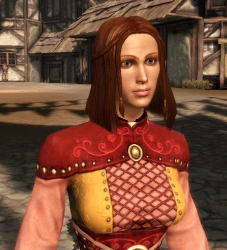 Sie kam mit ihrem Vater nach Denerim und während dieser mit Bann Alfstanna Eremon in der Taverne über politische Angelegenheiten redet, kann der Wächter sie auf dem Markt in Denerim finden, wo sie die Qualität der orlaisianischen Seide bewundert, etwas, was in Südhang selten geworden ist.
