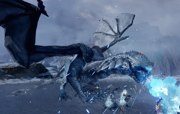 - Sobald sein Leben die 20-%-Marke unterschreitet, hebt der Hivernal noch einmal ab. Es gelten dieselben Regeln wie schon zuvor, allerdings nutzt er dieses Mal auch ausgiebig seinen Eisatem, während er über das Schlachtfeld hinwegfliegt.