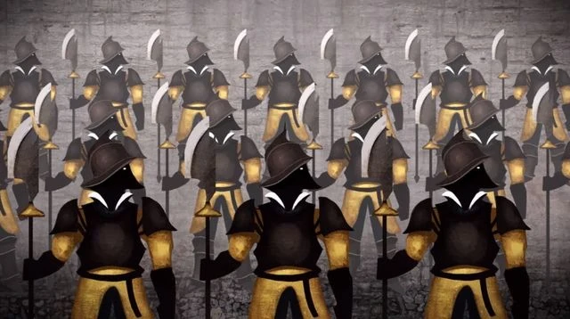 Los siervos también llevan máscaras en público, pero son mucho más simples que las de sus amos y son utilizadas también para identificar a qué familia sirven.