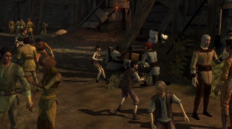 Przyjęliśmy więc elfy do naszych miast i podjęliśmy próby integracji. Zaprosiliśmy je do naszych domów i daliśmy im pracę jako służącym i pomocnikom. Tutaj, w Denerim, elfy mają nawet własną dzielnicę, zarządzaną przez własnego opiekuna. Większość z nich jest dobrymi obywatelami, lecz niewielka część populacji elfów wciąż jest niezadowolona. Ci chuligani i malkontenci grasują po ulicach, wzniecając rozruchy, buntując się przeciwko władzy i powodując rozmaite inne nieprzyjemności.