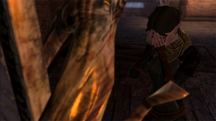 Идите в лачугу Мерриль и поговорите с ней. Она в ужасе от произошедшего (смерти Маретари или же убийства клана, в зависимости от ваших действий). Но теперь она решает, что пора жить для себя, и попросит вашего совета.