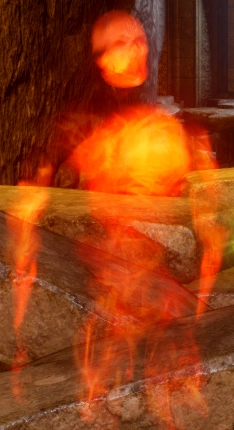 - Чтобы добыть завесный огонь из круга мёртвых в разрушенной башне направляйтесь в пристанище ученого, миновав фиолетовое пламя поднимайтесь наверх, взаимодействуйте со статуей волка. После этого как можно скорее возвращайтесь в разрушенную башню и взаимодействуйте с кругом мертвых. После этого возвращайтесь к статуе волка и зажгите огонь в чаше напротив статуи (необходимо для получения достижения «Нестандартное мышление»). Самым опасным препятствием здесь является расставленное Соласом фиолетовое пламя. Миновать его можно, использовав разрядку Якоря, временно накрыть себя теневым плащом. Кроме того, персонаж с специализацией рыцаря-чародея тоже сможет пройти невредимым с помощью этого заклинания. Витязь с пассивной способностью неуступчивость тоже сможет пройти сквозь пламя, но потеряет почти всё здоровье.