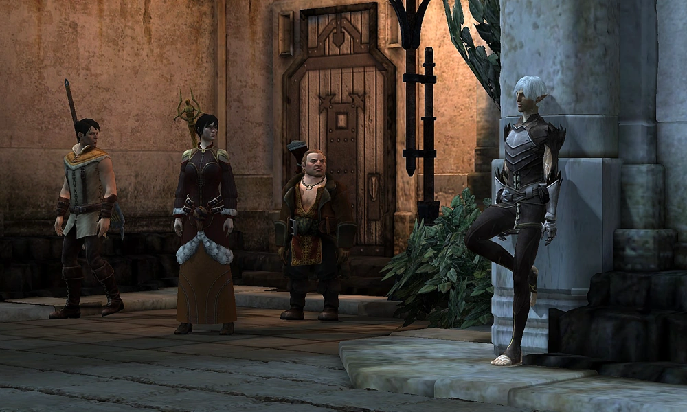 After a cutscene, Tevinter forces attack. The initial group consists of eight Tevinter Hunters in an arc surrounding the door. A variety of Slaver reinforcements, including a mage, arrive from different directions so try not to allow Hawke's party to become too spread out.
