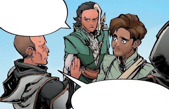 After Vaea successfully breaks them into the Qintara estate, she leaves Calix, Olivia and Ser Aaron behind to guard the exit, where Calix overhears Francesca demand an audience with Qintara, and finds out the Antivan Crows killed her brother Florian. When Francesca discovers that Magister Qintara has in reality been dead for years, and instead an elven spy has been pretending to be him, Aaron and Calix run to rescue Francesca. She is forced to accept their help when an army of qunari break into the estate.