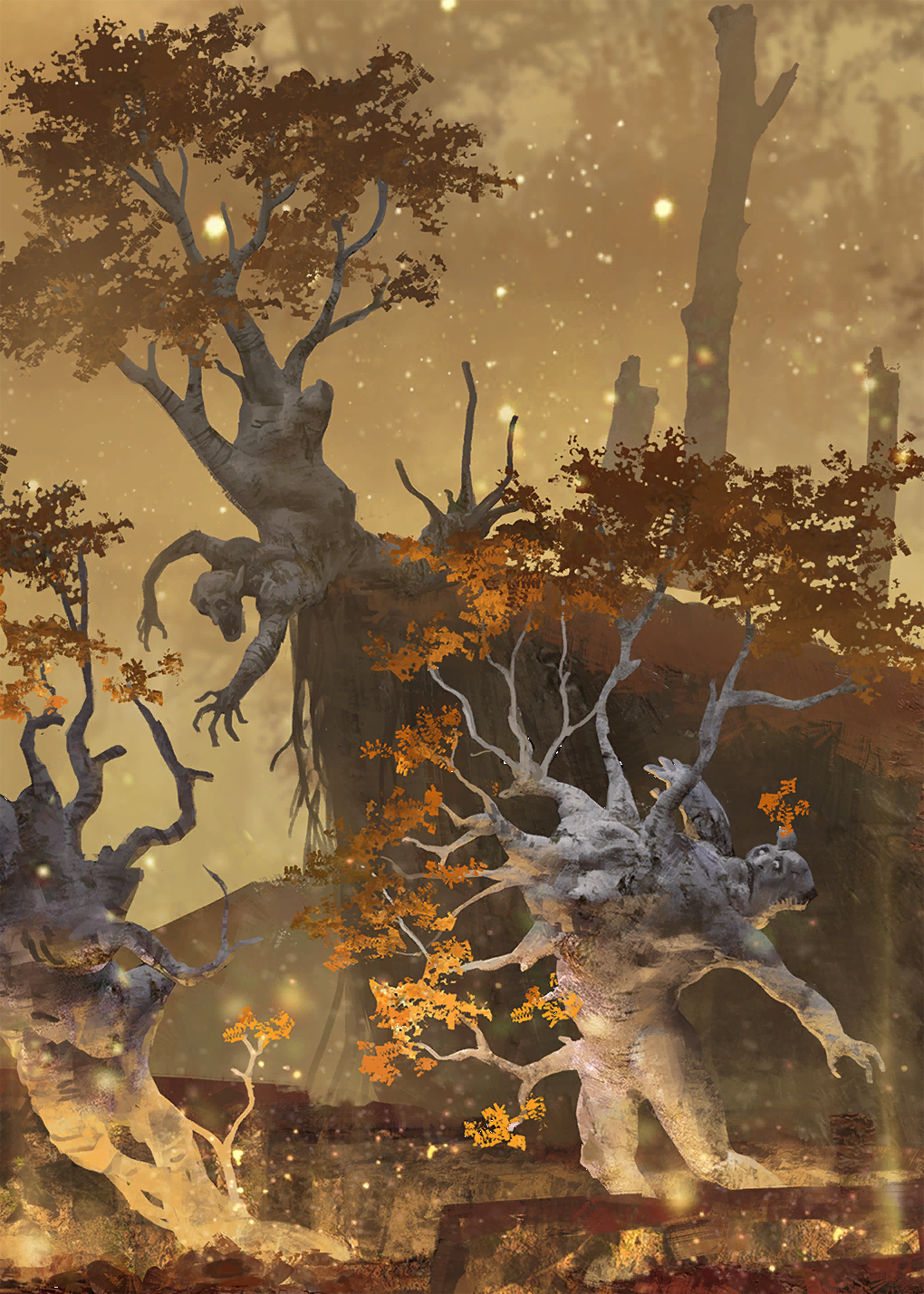Lights emerged from the darkness. Spirits of hope. Though their eyes widened, the travelers kept singing. The spirits gathered around Arend. One knelt beside Elke....