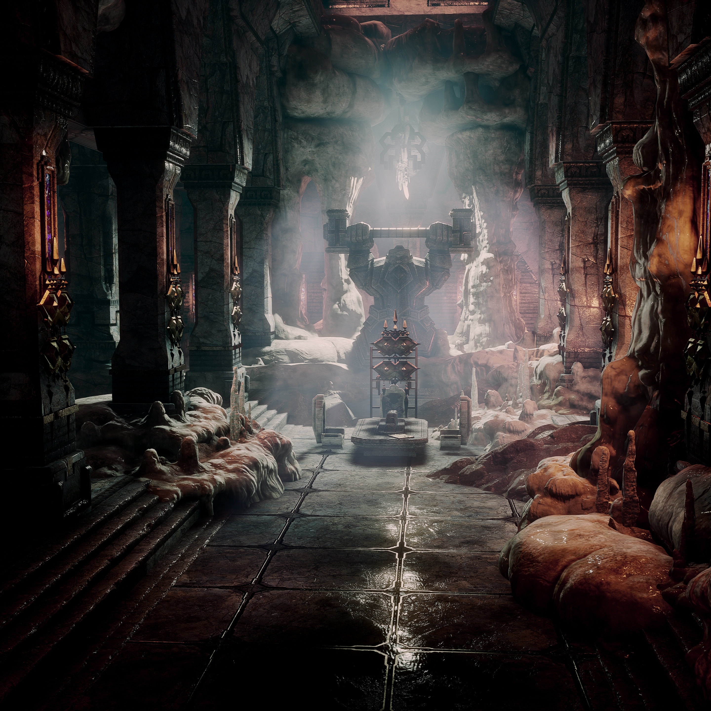 More than a century later and with the First Blight still raging, in -255 Ancient one of the dwarves' greatest engineering feats was developed: the creation of the Anvil of the Void, created by Paragon Caridin, which could forge giant golems. These controllable creatures, bipedal warriors of stone or metal, were devastating on the battlefield and allowed the dwarves to push the darkspawn back and reclaim some of their lost territory. The master smith constantly produced golems for six years until King Valtor started using the Anvil to turn casteless, criminals, and political enemies into golems, instead of just volunteers.[32] Caridin objected and in turn was made into a golem himself. However, his apprentices knew not how to properly construct a control rod, allowing Caridin to retain his free will and mind. Caridin disappeared into the Deep Roads in -248 Ancient[33], taking his followers and the Anvil with him.[34]