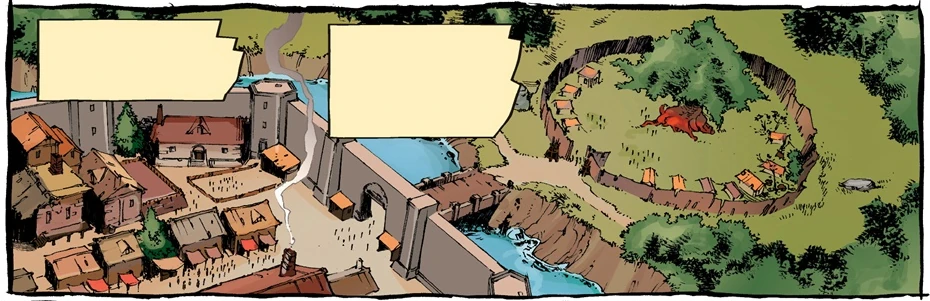 As Gell focuses on rebuilding, Marcel Corbin leads his troops against the combined forces of his rebellious nobility, Bann Bryton, Bann Lanya, Bann Kail, Bann Parth, and the mercenary companies led by Alora and Fallon. To make matters worse, a host of darkspawn led by a hurlock general attacks Edgehall amid the infighting. The banns and mercenaries join forces with Marcel Corbin to face the darkspawn invaders.[3]
