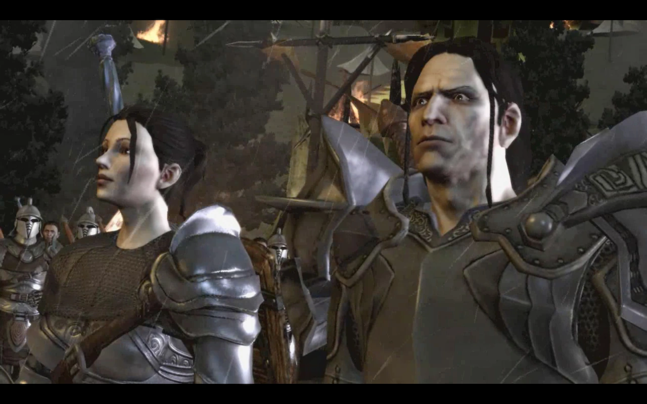 Teyrn Loghain and Ser Cauthrien at Ostagar.