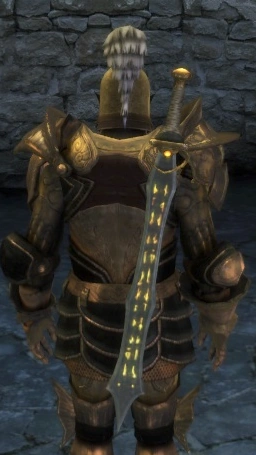 - Based on the novels, the runes on the blade glowed blue, but in-game they glow yellow. Furthermore, in the novels it is stated that the blade is made of dragonbone while in-game the blade is made of red steel, when obtained.