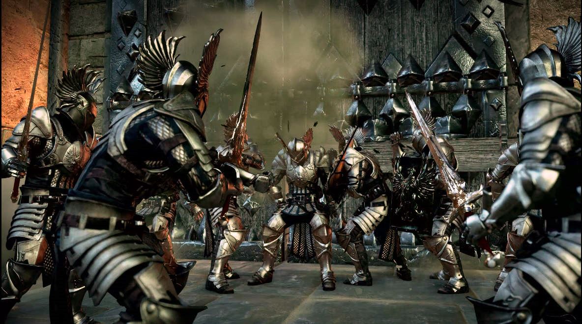 Led by Commander Cullen Rutherford, the forces of the Inquisition storm Adamant Fortress, allowing the Inquisitor and their companions to infiltrating the walls. However, the Grey Wardens assembled there fought back, and a battle between the Wardens and the summoned demons against the Inquisition's soldiers ensued.