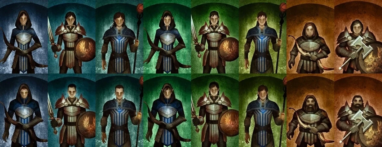 Similarly to the creation of the Warden, the player begins by selecting a gender, race (human, elf or dwarf), and class (warrior, rogue or mage); the mage class is unavailable to dwarves. Then comes the option to customize name, physical features (only above the shoulders) and portrait, and choose a voice set. Attributes and skills are selected next. If playing as a warrior or rogue, talents are selected; mages select spells instead. Finally, the player selects his or her preferred difficulty level and the story begins.