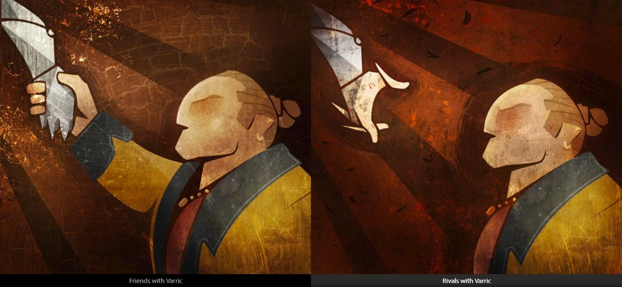 Varric personally participated in one of Rook's daring exploits, which proved to Varric that they had the cleverness, adaptability, and determination that Varric needed in his second-in-command. Fortunately for Varric, Rook's daring exploit was controversial enough for their faction to send them away for a while, which gave Varric the opportunity to recruit them into his team, the Veilguard.