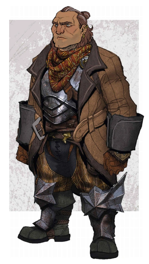 Varric is a rogue from House Tethras. He is the youngest son of the Tethras family while his older brother is the head and runs the family business. On the outside, he is seen as the idle younger brother who spends his time in taverns telling wild stories while people buy him drinks. His real job is to maintain a "spy network" with contacts to deal with various troubles that come along with being in a family that is part of the Dwarven Merchants Guild.