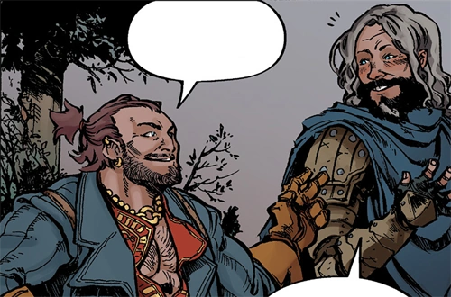 Varric invites Ser Aaron, a renowned Fereldan knight, to his coronation celebration. Varric himself goes to greet him in Kirkwall's port, and gives Ser Aaron a tour around the city before the celebration starts. Varric takes special interest in Ser Aaron's elven squire, Vaea.