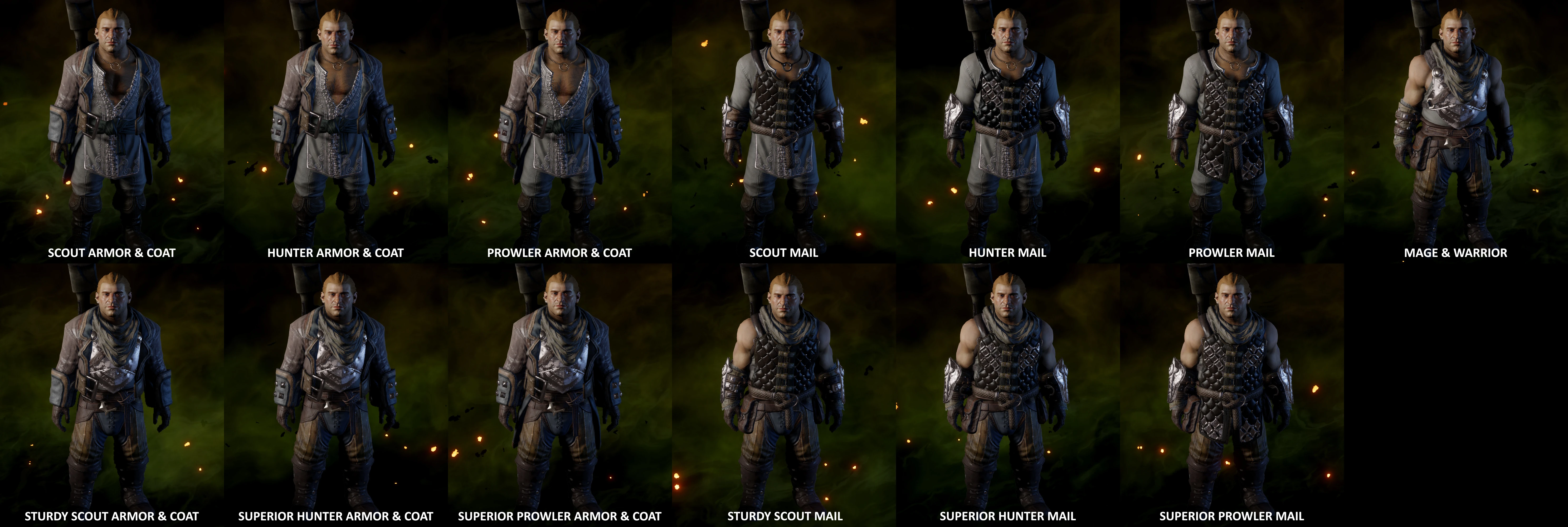 Armor variations for Varric. Note: Sturdy, superior & refined armors of the same type are visually identical.